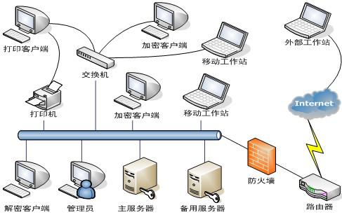 服务器负责系统的维护和管理,系统划分系统管理员、终端管理员、日志管理员等多种角色,系统管理员负责终端的管理、用户和组织结构的划分和维护、日志的查看、安全策略的制定,日志管理员负责日志的维护和报表输出,终端管理员是二级管理员,负责部门的终端维护和加解密策略的分发。 在安装有TDSM-DSM的客户终端,使用者所生成的重要文件将自动加密保存。企业管理者可控制使用者对文档的读取、存储、复制、拷屏、输出的权限。从而防止使用者之间非法复制、外部发行、光盘拷贝。杜绝利用U盘、软盘、光盘、电子邮件等轻易地拿走公司的技术文件、设计图稿、财务帐目、战略计划、事业计划、研究论文等机密文件。 TDSM-DSM采用分级管理模式,系统管理员可以设定不同的子管理员(如:超级管理员、文件管理员、分级管理员等)。客户端登录时,直接使用Windows当前登录的域用户帐号或者本机帐号作为TDSM-DSM文档安全系统的帐号进行校验。可以针对对公司内部域管理模式设置系统的权限,也可以根据公司架构设定多个子管理员进行管理。