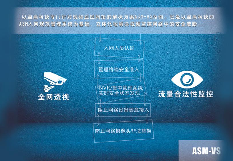 采用入网规范管理系统(ASM6000)形成了针对视频监控网络的解决方案ASM-VS。该方案以的ASM产品为基础,立体化的解决视频监控网络中的安全威胁。